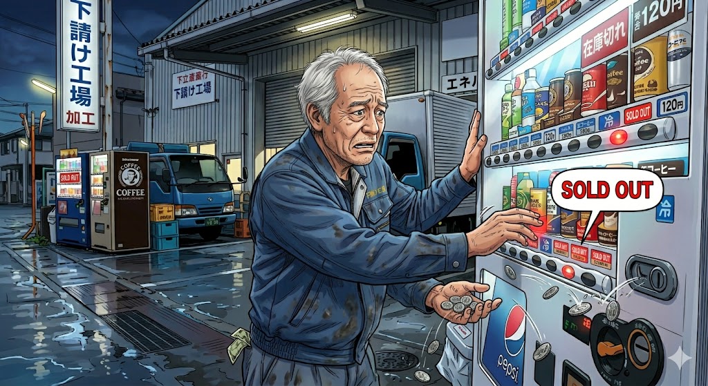 ☕ 自販機に敗北した絶望 挨拶に訪ねた70代の工場長はいつも明るい人でした。 しかしその日は見たこともない暗い顔で激しく動揺していたのです。理由を聞けば自販機で缶コーヒーが買えないという悩みを打ち明けられました。120円を投入しても当たり前の操作... -